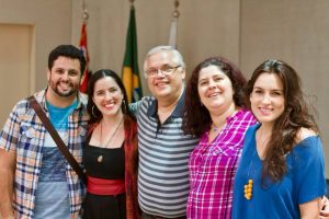 Na foto acima, o musicoterapeuta Diego Schapira com os musicoterapeutas alunos da formação: Mauro Anastacio (Espaço Colmeia), Camila Gonçalves, Queila Oliveira e Maria Carolina Simões.